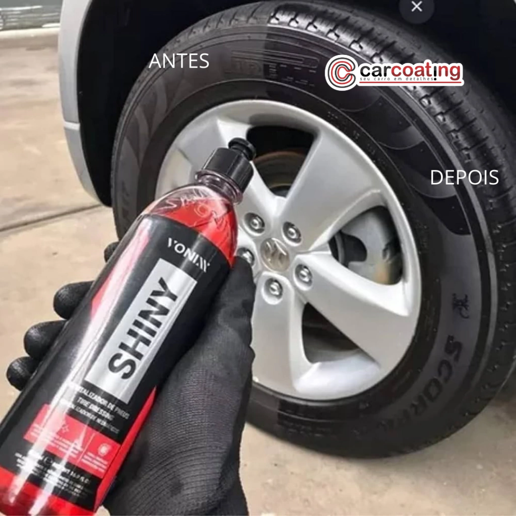 O Shiny é um revitalizador de pneus, que fornece um alto brilho e hidratação para os pneus de seu veículo por um longo tempo.