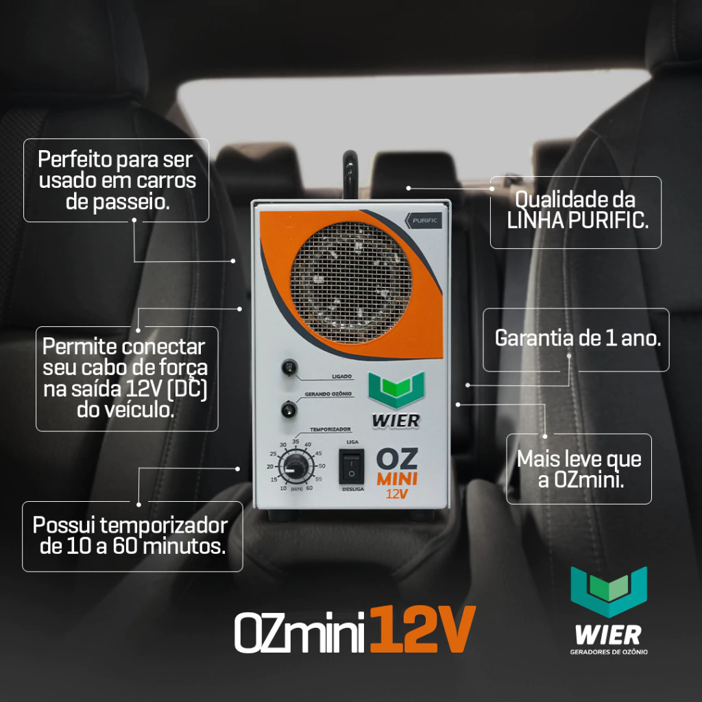 O Gerador de Ozônio da Wier é capaz de esterilizar, higienizar, desinfetar e purificar os ambientes. O processo acontecerá com a transformação de todo Oxigênio dentro do ambiente do carro em Ozônio e com isso o odor será eliminado em definitivo.